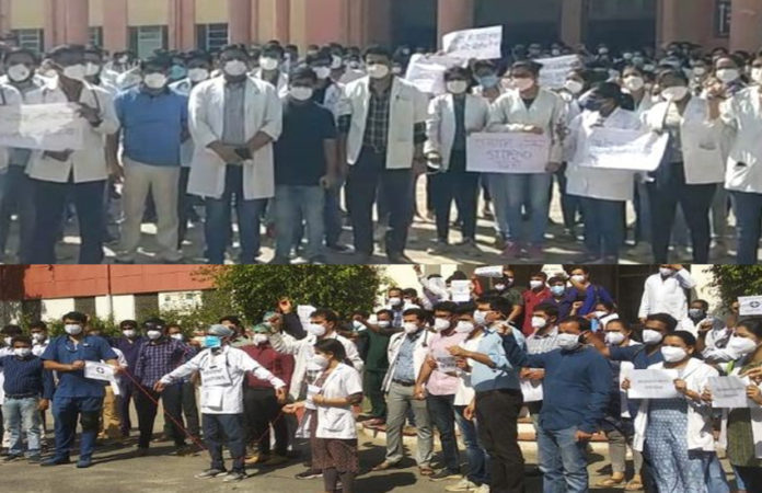 जयपुर। राजस्थान में कोरोना संक्रमण के बीच एक नई मुसीबत आन पड़ी है। प्रदेश में मेडिकल कॉलेज के रेजीडेंट डॉक्टर्स हड़ताल की तैयारी में है। कोविड-19 और ब्लैक फंगस महामारी महामारी के बीच ही अपनी विभिन्न मांगों को लेकर प्रदेशभर के रेजिडेंट्स डॉक्टर्स ने आज दो घंटे हड़ताल की। रेजिडेंट्स डॉक्टर्स ने आज सुबह 8 से 10 बजे तक संपूर्ण कार्य बहिष्कार का निर्णय लिया है। करीब डेढ़ साल से कोरोना से लड़ने में रेजीडेंट डॉक्टर्स ही सबसे आगे रहे हैं। इसके बाद भी राजस्थान के रेजीडेंट डॉक्टर्स देश के अधिकांश राज्यों की तुलना में कम ही नहीं बल्कि कुछ राज्यों से तो आधा वेतन ही पा रहे हैं।